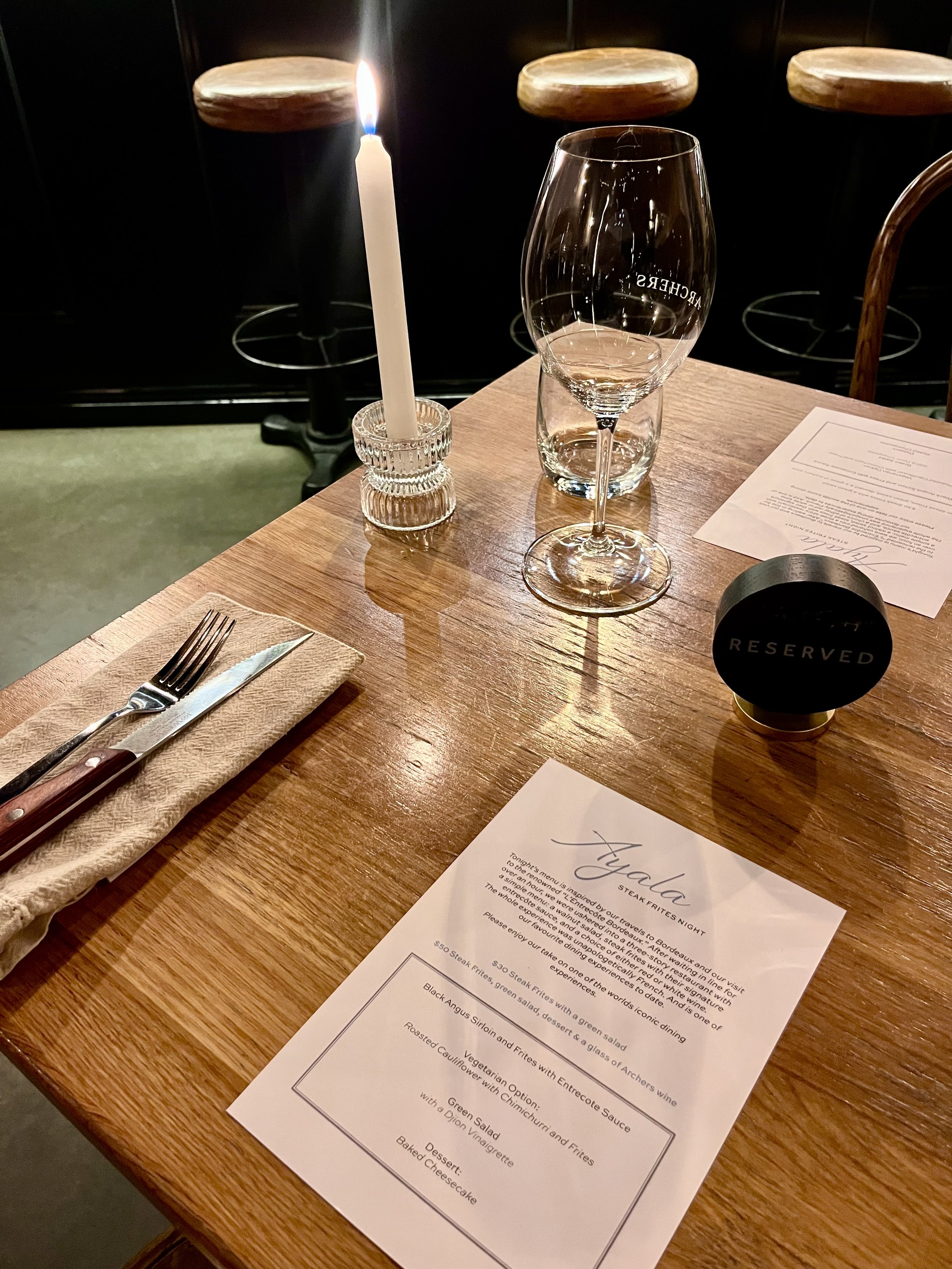 The Ayala Steak Frites Night is inspired by our travels to Bordeaux and our visit to the renowned “L’Entrecôte Bordeaux.” After waiting in line for over an hour, we were ushered into a three-story restaurant with a simple menu: a salad, steak frites with their signature entrecôte sauce, and a choice of either red or white wine.